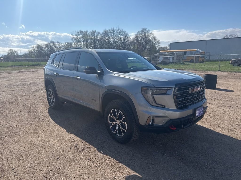 Purchase our 2026 GMC Acadia AT4 AWD with Luxury and Super Cruise Packs to give your family the power it needs to explore your world in Sterling Metallic! Motivated by a TurboCharged 2.5 Liter 4 Cylinder that offers 328hp to an 8 Speed Automatic transmission, so you're well-prepared for adventure. Active Torque Control, hill-descent control, and a performance suspension are standard for stronger trail capability, and this All Wheel Drive SUV scores nearly 26mpg on the highway. Daring dark accents highlight our Acadia exterior with LED lighting, aggressive alloy wheels, gloss-black roof rails, steel skid-plate protection, a panoramic sunroof, and a hands-free liftgate.