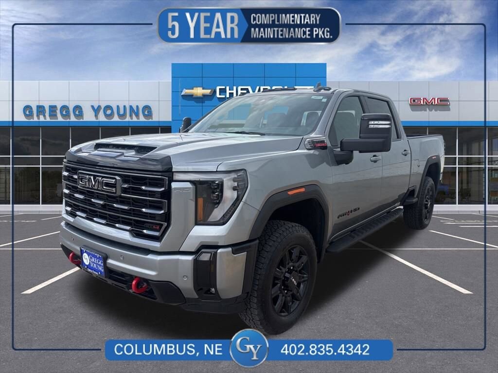 Step up to our powerful 2026 GMC Sierra 2500HD AT4 Crew Cab 4X4 with the Premium Plus Package that stands out with a bold and heroic design in Sterling Metallic! Motivated by a TurboCharged 6.6 Liter DuraMax Diesel V8 providing 470hp and 975lb-ft of torque to a 10 Speed Allison Automatic transmission. This Four Wheel Drive truck also has an off-road suspension, skid plates, hill-descent control, and an Autotrac 2-speed transfer case for getting to hard-to-reach jobs. Our Sierra boasts LED lighting, red recovery hooks, 20-inch high-gloss black alloy wheels, a spray-on bedliner, off-road high clearance steps, power-sliding rear window, LED smoked amber roof marker lamps, a power sunroof, and a MultiPro tailgate for high-visibility styling.Our AT4 cabin is your mobile command post for doing more. It features heated/ventilated leather power front seats and heated rear seats, a heated-wrapped steering wheel, dual-zone automatic climate control, keyless access/ignition, remote start, and remarkable technologies. Highlights include a Bose audio system, a 12.3-inch driver display, a 13.4-inch touchscreen, Google Built-in, WiFi compatibility, Apple CarPlay/Android Auto, Bluetooth, and wireless charging.GMC helps you stay safe as you work hard with a surround-view system, 15-inch head-up display, a bed-view camera, trailer-capable blind-spot monitoring, automatic braking, parking sensors, lane-departure warning, trailer-sway control, hill-start assistance, and more. When tough jobs call, our Sierra 2500HD AT4 is ready to answer! Save this Page and Call for Availability. We Know You Will Enjoy Your Test Drive Towards Ownership! Price includes: $1000 - Buick & GMC Consumer Cash Program. Exp. 04/30/2026