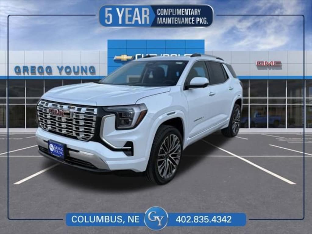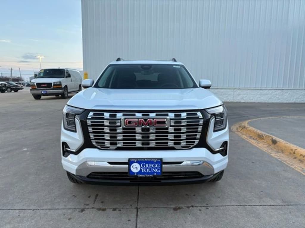 Our 2026 GMC Terrain Denali AWD takes refined capability to the next level in Glacier White Tricoat, where luxury, performance, and allweather confidence converge. Powered by a TurboCharged 1.5 Liter 4 Cylinder delivering 175hp to a 9 Speed Automatic transmission with Electronic Precision Shift for a premium driving experience. A dedicated Denali suspension delivers composed handling even under challenging conditions, and this All Wheel Drive SUV scores nearly 28mpg on the highway. Our Terrain turns heads with signature LED lighting, fog lamps, an exclusive Denali grille, 19-inch alloy wheels, a hands-free liftgate, a panoramic sunroof, and handy roof rails.