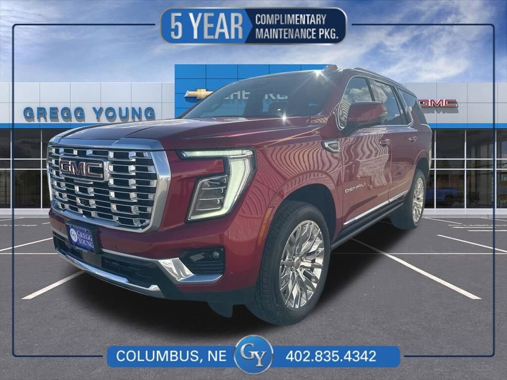 Ready for modern family life, our 2026 GMC Yukon Denali 4WD with the Sun and Power Step Pack in Volcanic Red Tintcoat blends advanced technology, spacious versatility, and confident capability to keep every drive comfortable and connected. Motivated by a 6.2 Liter V8 delivering 420hp to a 10 Speed Automatic transmission, so that the world won't pass you by. This Four Wheel Drive SUV is calm and composed on the road and the trail, thanks to Magnetic Ride Control, and it achieves nearly 20mpg on the highway with bold body-on-frame construction. Exclusive exterior details help our Yukon stand strong with LED lighting, a hands-free liftgate, roof rails, power retractable assist steps, satin chrome trim, panoramic sunroof, and eye-catching 22-inch polished aluminum wheels.
