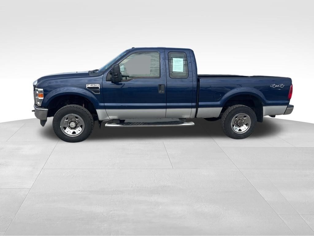 Meet our ready-to-work 2008 Ford F-250 XLT Extended Cab 4X4 in Blue. Powered by a 5.4 Liter V8 generating 300hp while connected to a 6 Speed Automatic transmission for easy passing and towing commands. Our Four Wheel Drive truck attains nearly 18mpg on the road while enhanced by alloy wheels, running boards, and an impressive grille.