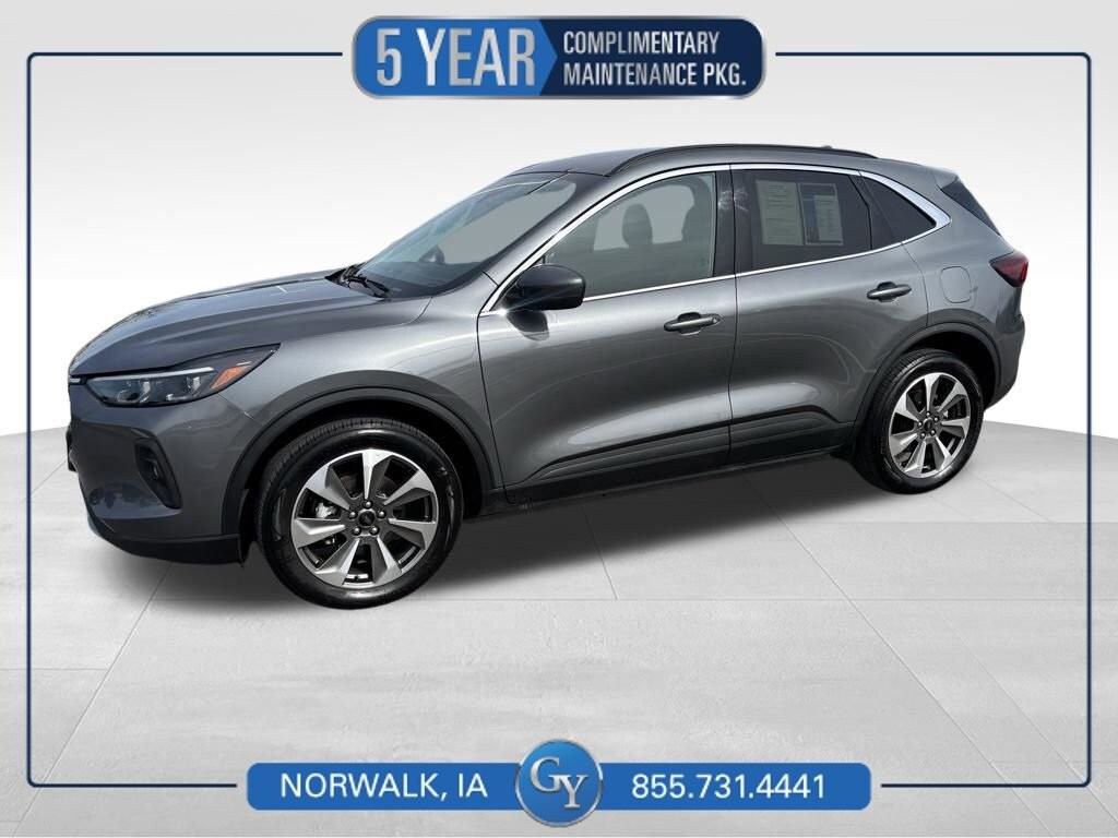 Primed for premium travel, our Accident Free 2025 Ford Escape Platinum AWD stands proud in Carbonized Gray Metallic! Motivated by a TurboCharged 2.0 Liter EcoBoost 4 Cylinder delivering 250hp to an 8 Speed Automatic transmission for confident acceleration. This All Wheel Drive SUV also helps you master the miles with comfort while returning nearly 31mpg on the highway. You'll be riding in style, too, with our Escape's LED lighting, fog lamps, power liftgate, black roof rails, dual exhaust outlets, and alloy wheels.